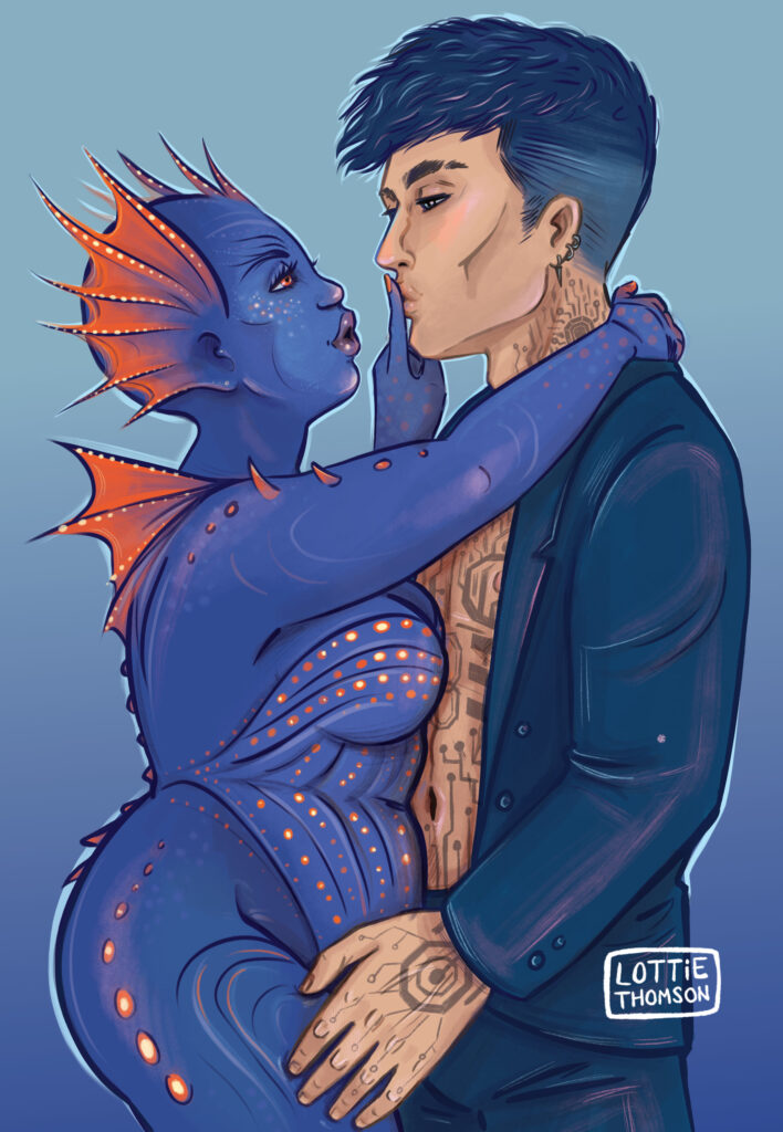 Lottie Thomson (Charlotte Thomson-Morley – she/her) brings bookish character art and portraits to life for indie authors. Based in the UK and with over 20 years experience as a freelance illustrator, she specialises in consciously inclusive and playful art, supplied ready for use in print and on social media. NSFW projects considered! Email hello(at)lottiethomson.com to enquire!