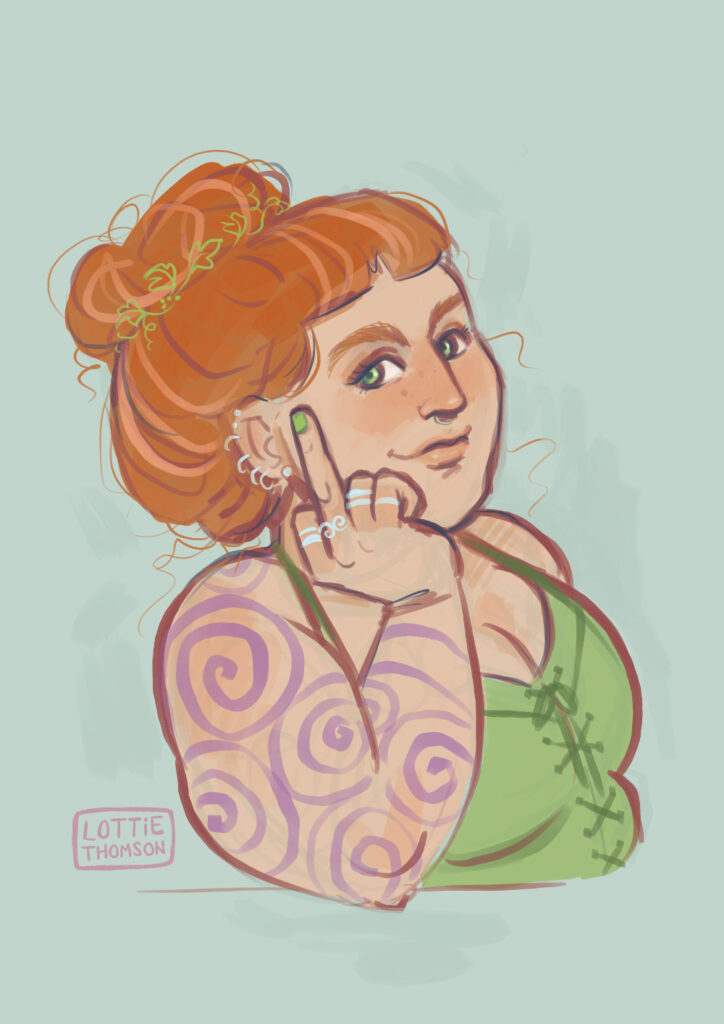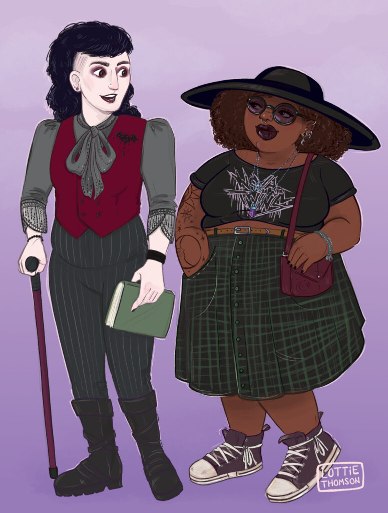 Lottie Thomson (Charlotte Thomson-Morley – she/her) brings bookish character art and portraits to life for indie authors. Based in the UK and with over 20 years experience as a freelance illustrator, she specialises in consciously inclusive and playful art featuring queer couples and fat bodies. Supplied ready for use in print and on social media. NSFW projects considered! Email hello(at)lottiethomson.com to enquire!