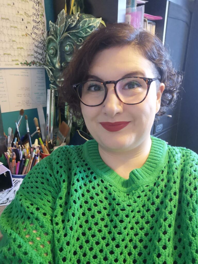 Lottie Thomson (Charlotte Thomson-Morley she/her) is an illustrator, fine artist and library worker based in Nottinghamshire in the heart of England. She specialises in character art that is consciously inclusive of different body sizes, queer and disability friendly, full of personality, warmth and humour.